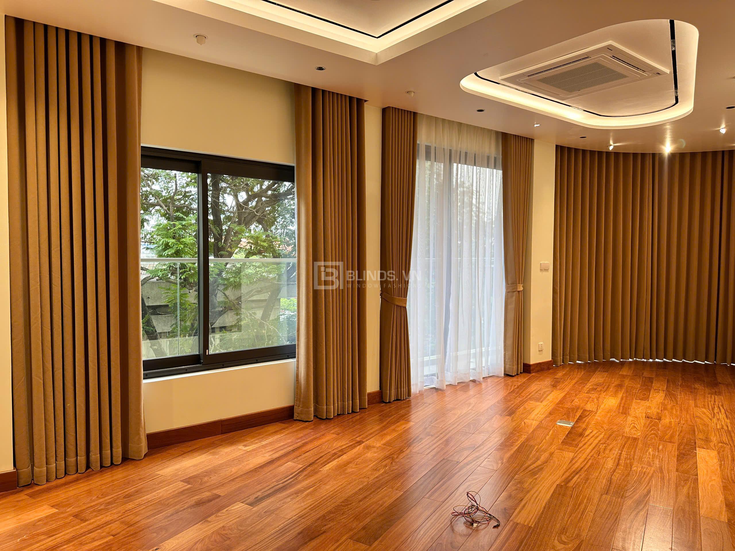 - May đo theo chuẩn kích thước thực tế: Rèm được thiết kế theo từng khung cửa với kiểu may ore định hình, tạo độ rũ mềm mại và đồng đều.