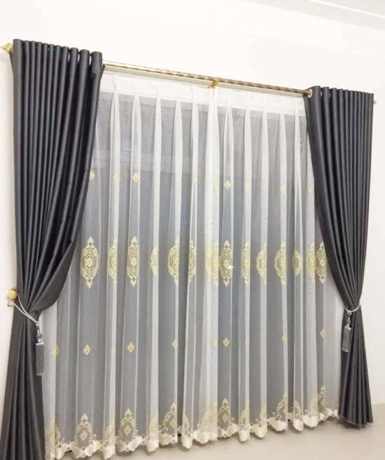 Rèm vải 2 lớp thêu hoa văn nghệ thuật có giá thành khoảng 1.100 – 1.800/ mét ngang thành phẩm. Giá đã bao gồm công may và thanh treo. Ngoài ra phí lắp đặt giao động 200-500 nghìn đồng.