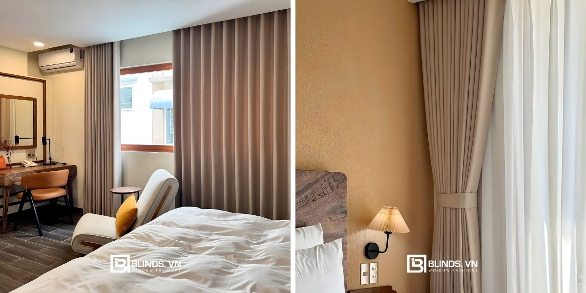 Sự tiết chế màu sắc giúp rèm trở thành điểm nhấn hài hòa.