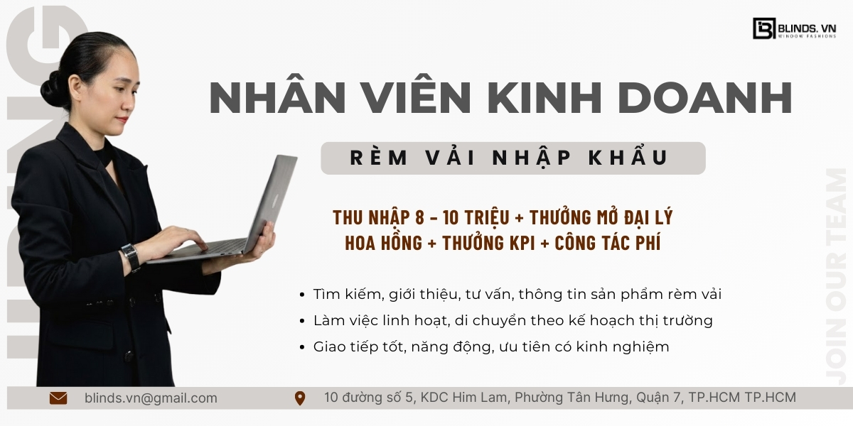 Blinds Việt Nam – thương hiệu rèm cửa cao cấp Top 1 Google, mang đến môi trường làm việc đầy thử thách và cơ hội phát triển. Hãy nhập chúng tôi để cùng viết những câu chuyện thành công trong lĩnh vực rèm cửa cao cấp!